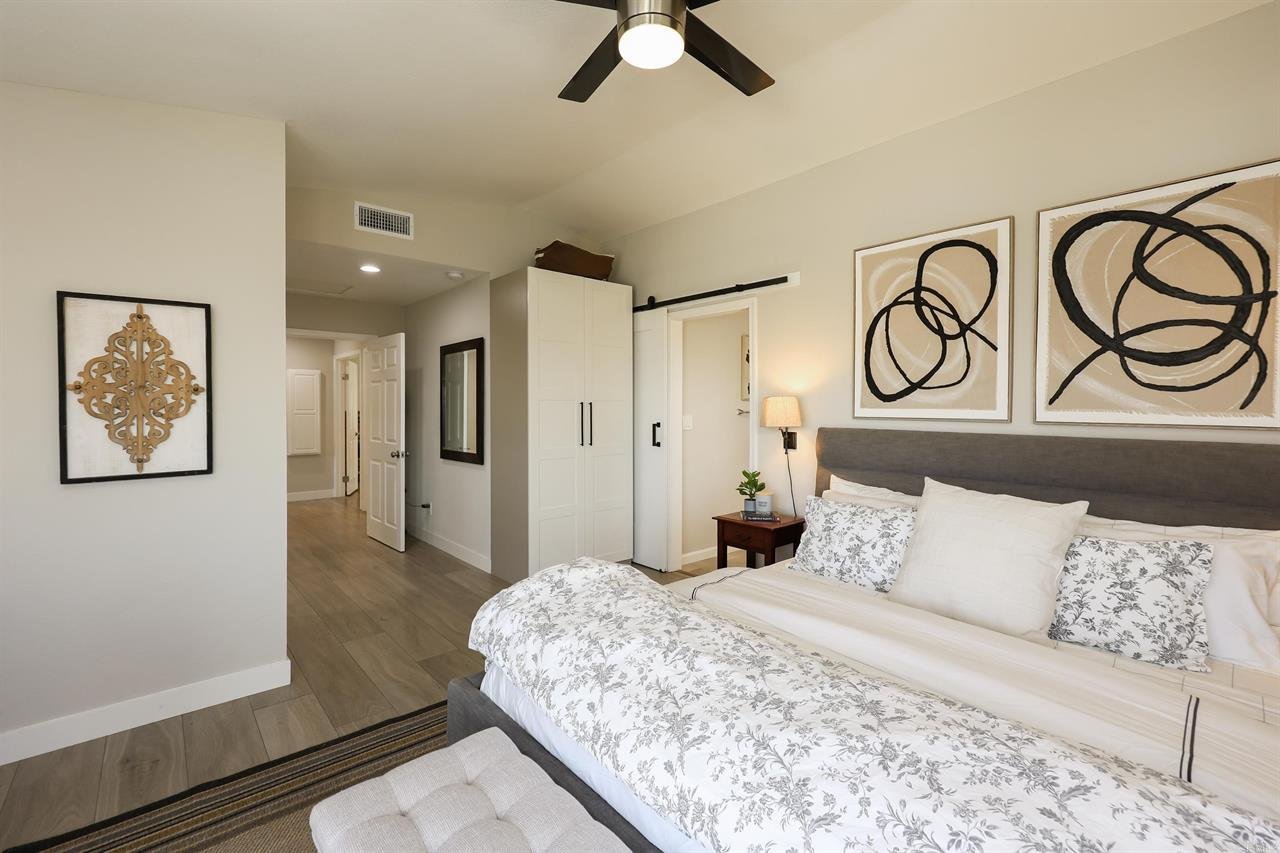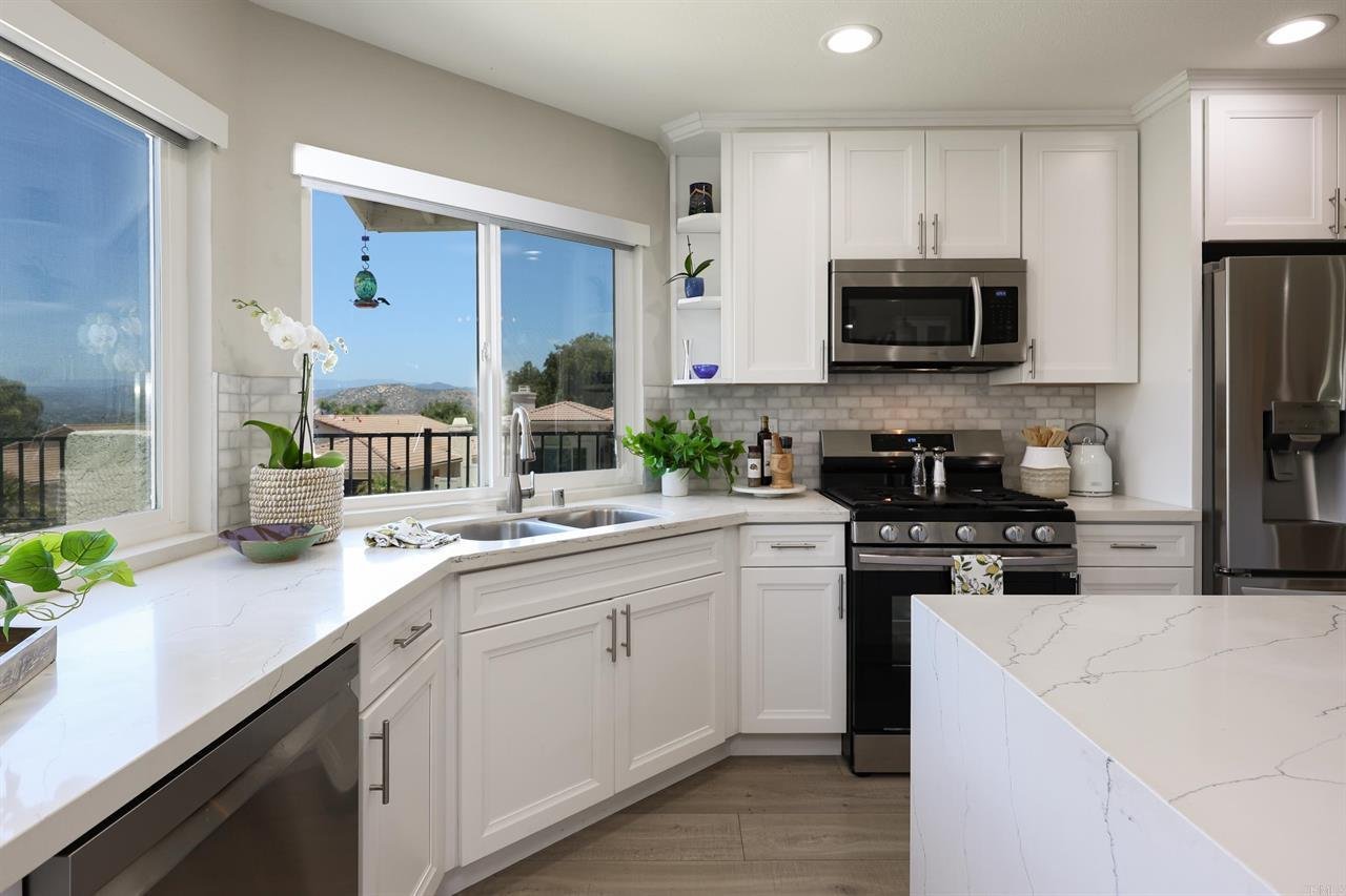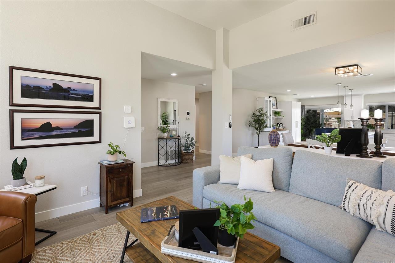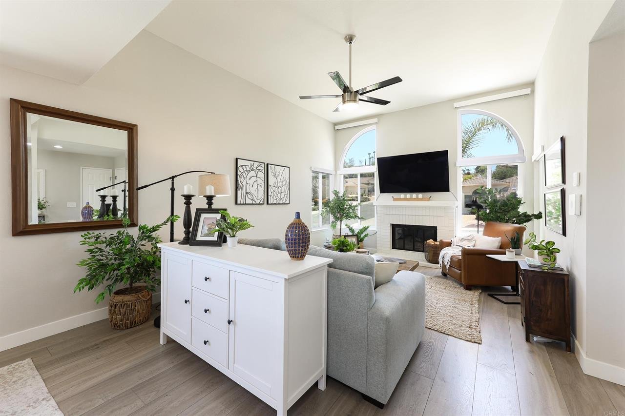 *PAID OFF* SOLAR AND TESLA POWERWALL SOLAR BATTERY SYSTEM! Welcome to your dream retreat in one of San Diego’s most sought after 55+ communities. Located on a quiet cul-de-sac, adjacent to greenways with paved paths, and perched on an elevated corner lot, this stunning residence offers breathtaking views of the mountains and the San Pasquale Valley! Step inside to discover a light-filled, open layout with vaulted ceilings, recessed lighting, a cozy fireplace, and luxury finishes throughout. The modern chef’s kitchen features scenic views, waterfall quartz counters and a giant island and bar area ideal for entertaining. The spacious master suite also takes in the views of scenic vistas and a walk-in closet. Both bathrooms have been tastefully updated and feature quartz counters and walk-in showers. A new air conditioner, and low-E dual paned windows throughout, add to the home’s energy efficiency. The backyard, with its picturesque backdrop, is perfect for enjoying a morning cup of coffee or hosting family and friends. The drought-tolerant landscaping is designed for low maintenance and water efficiency. Located in Oaks North, this home offers access to incredible community amenities including; a sparkling pool and hot tub, pickleball courts, exercise room, clubhouse, and year-round social events and activities.