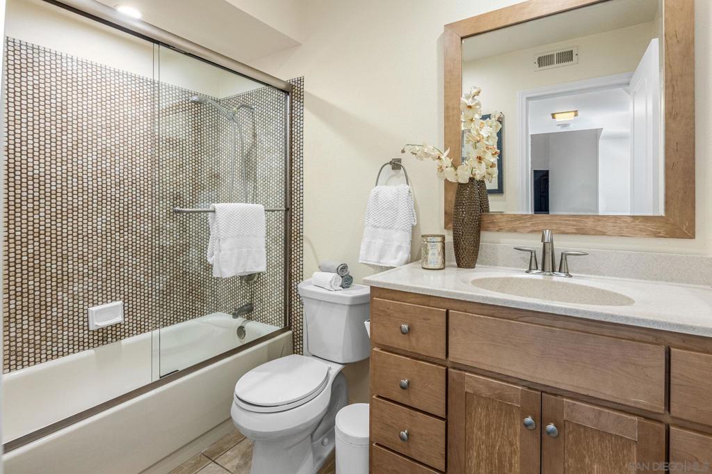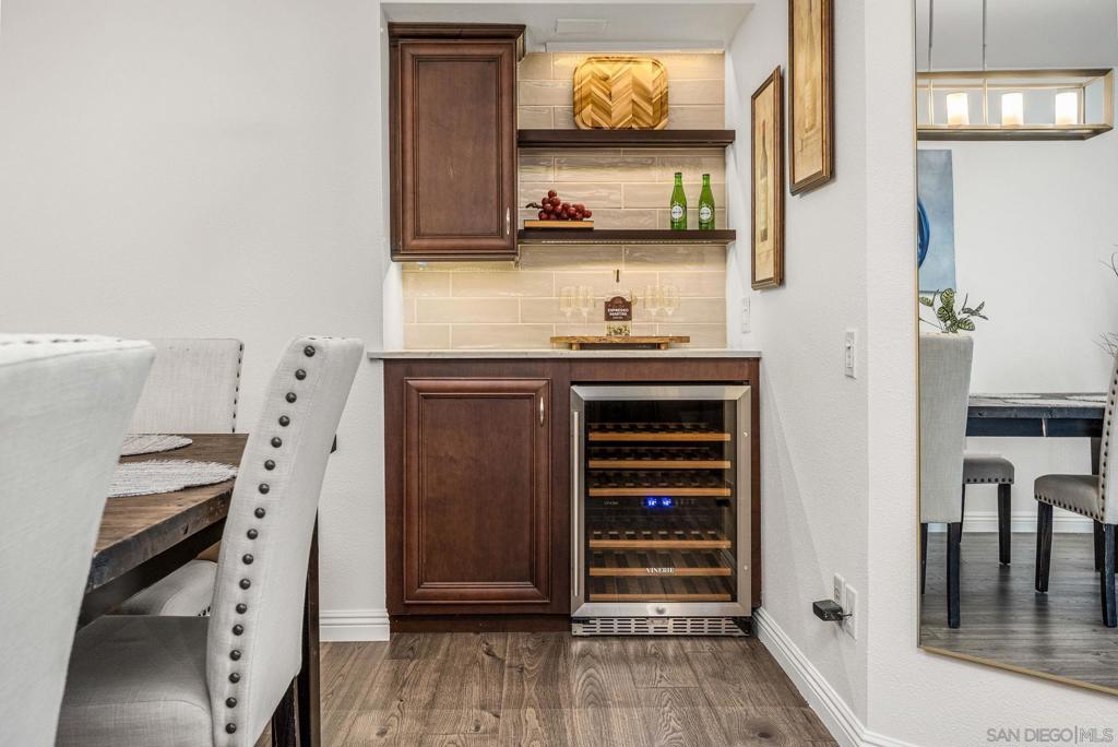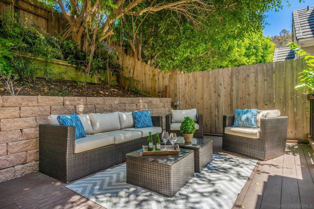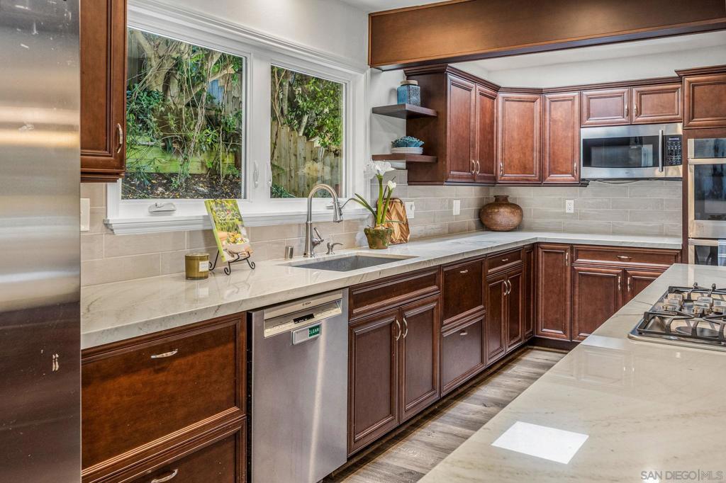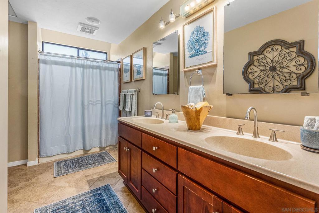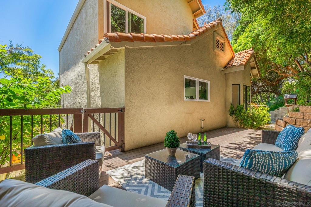 Wonderful detached home located on a quiet cul-de-sac in desirable Olde Carlsbad! Offering 4 bedrooms and 3 full bathrooms, this home features a flexible layout with a lower-level bedroom and bath that has potential for its own private entrance--ideal for multigenerational living, ADU or guest use. The light-filled interior boasts vaulted ceilings and a fully updated kitchen with quartz countertops, new cabinetry, recessed and pendant lighting, and a gas range. A stylish wet bar with mini fridge off the dining area adds a great touch for entertaining. Step outside to a private wraparound back porch surrounded by mature trees and lush landscaping--perfect for relaxing or outdoor gatherings. The spacious, upper level primary retreat includes an ensuite bath with dual sinks. Flooring includes luxury vinyl and brand new plush carpet. Enjoy a low-cost, amenity-rich HOA offering a pool, tennis courts, walking trails and potential RV parking. This is a must-see home in one of Carlsbad's most charming neighborhoods!