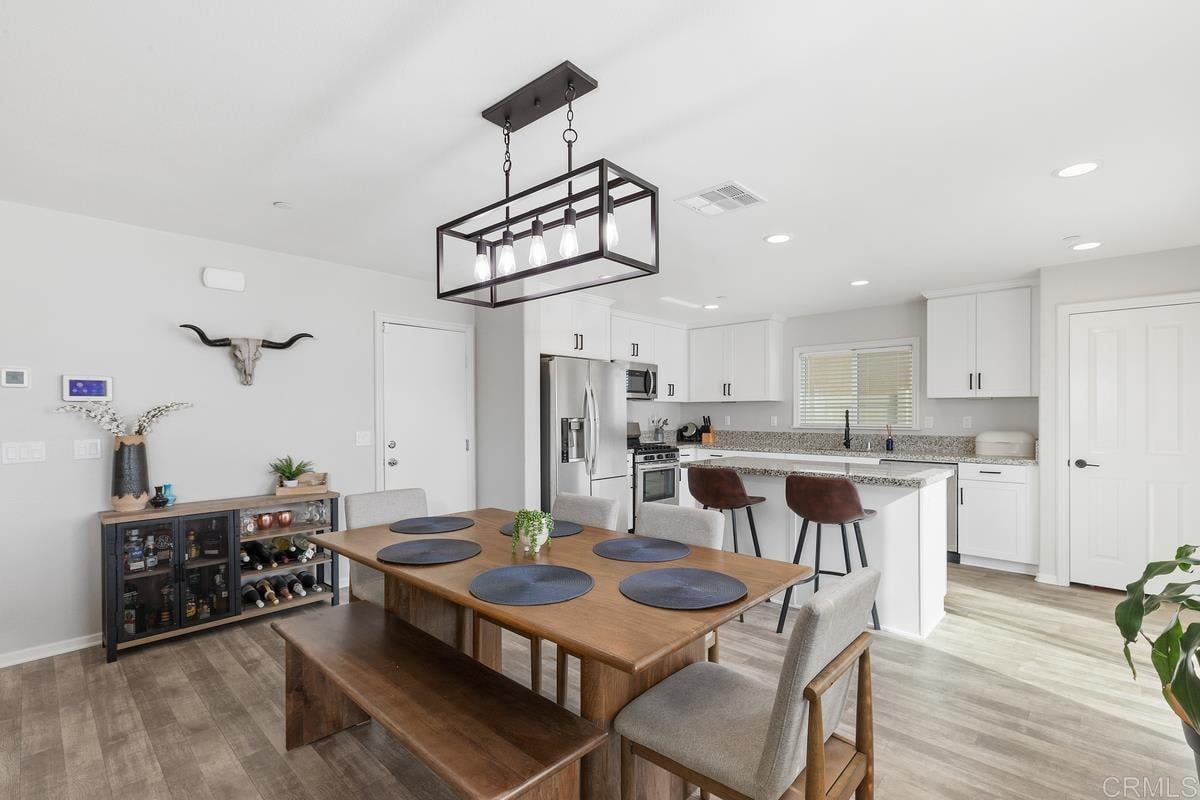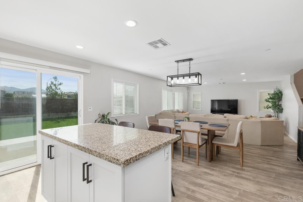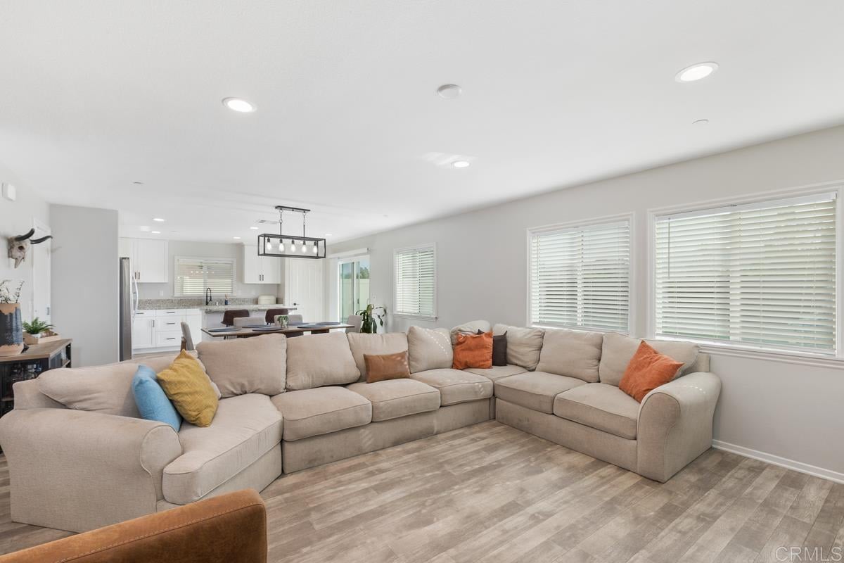 Welcome to this stunning home located in the desirable Summerly community of Lake Elsinore, CA. This spacious and inviting residence offers 4 bedrooms and 3 baths, with the convenience of one bedroom and bathroom located on the main level. As you step inside, you'll be greeted by an open concept layout that seamlessly connects the living, dining, and kitchen areas. The abundance of natural light that floods the space creates an inviting and warm atmosphere. The neutral color palette throughout the home provides a versatile backdrop for any style of decor. The interior features of this home are truly impressive. The luxury vinyl plank flooring not only adds a touch of elegance but also offers durability and easy maintenance. The well-appointed kitchen boasts modern appliances, ample counter space, and a convenient center island, making it a chef's dream. Outside, you'll find a maintenance-free front and backyard, perfect for those seeking a low-maintenance lifestyle. Spend your weekends relaxing or entertaining guests without the hassle of extensive yard work. This home is ideally located in Summerly, offering close proximity to the community pool, parks, shopping, and dining. Enjoy the convenience of having everything you need just moments away, while still being able to retreat to the peacefulness of your own private oasis. Don't miss the opportunity to make this exceptional Summerly home your own. Schedule a showing today and experience the beauty and convenience this property has to offer.