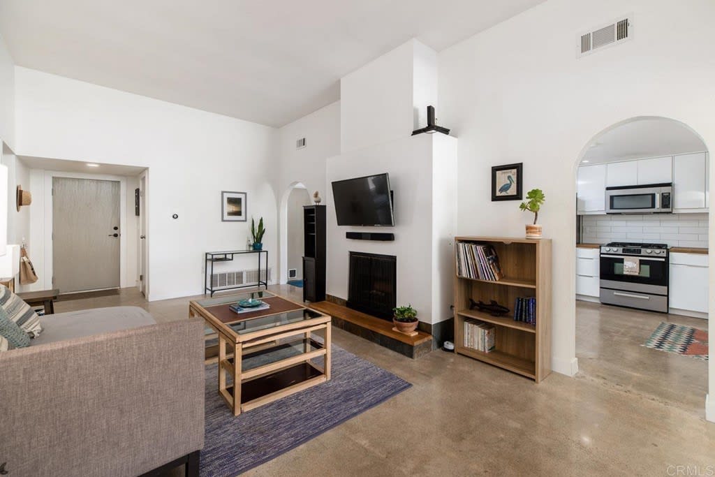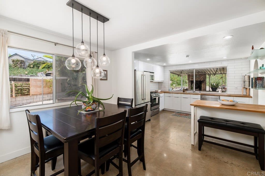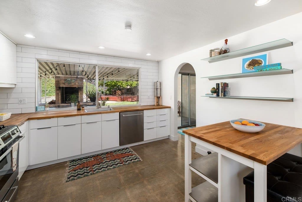 This amazing mid-century modern home offers an impressive interior, an expansive and scenic yard, all nestled in a quiet Oceanside neighborhood with NO HOA! Desirable single story and prime location just minutes to the beach, shopping, restaurants and more. Features include: beautiful open kitchen with butcher-block counters and stainless steel appliances, spacious floorplan with polished concrete flooring and soaring high ceilings, upgraded bathrooms, entertainer's dream yard with covered patio, outdoor fireplace, heightened deck, garden area and succulent wall.