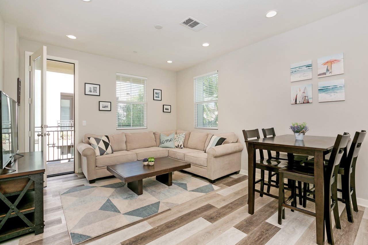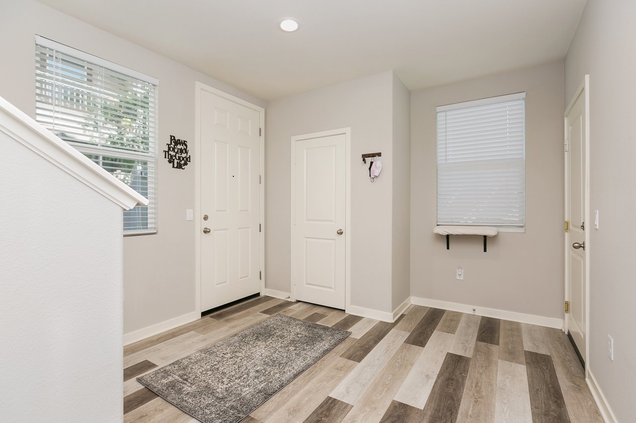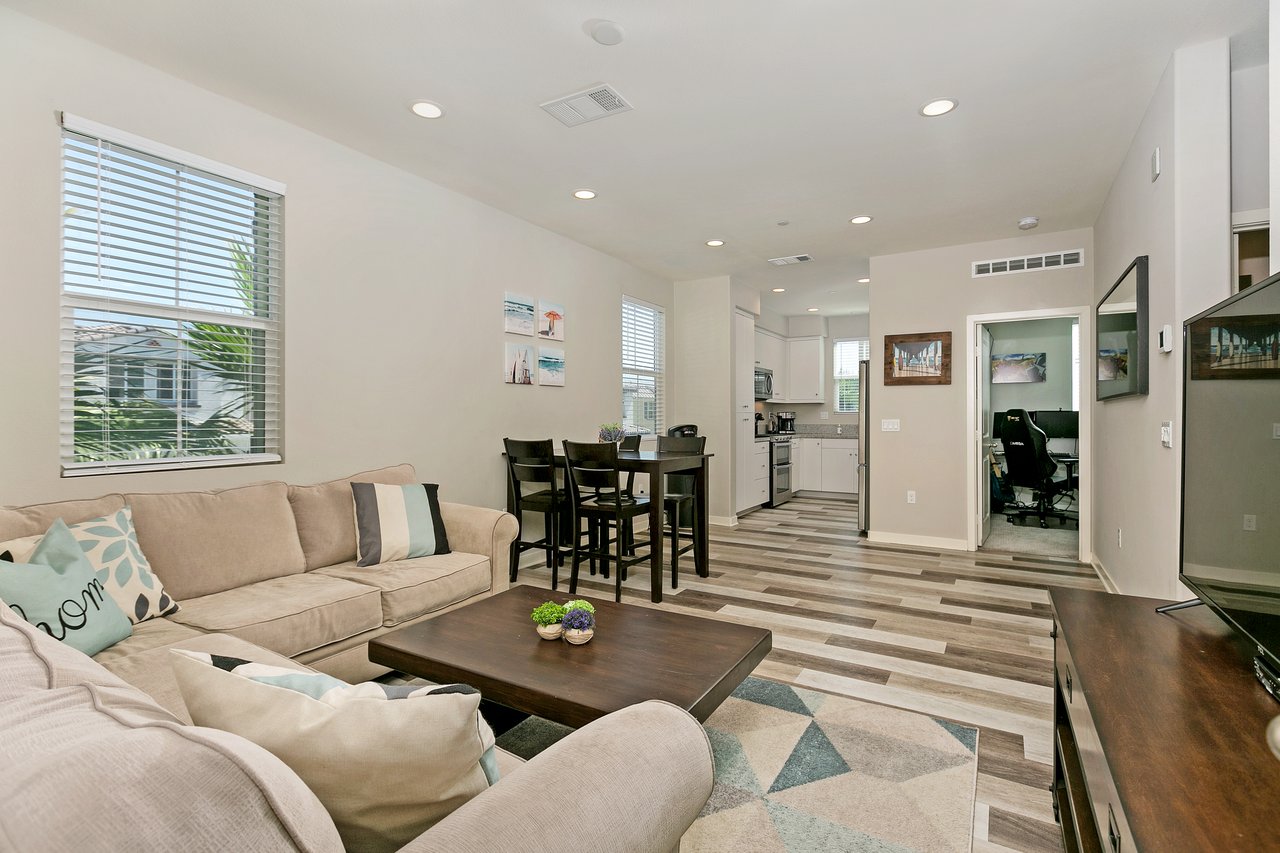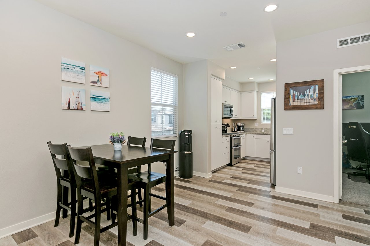 Nearly new home built by Beazer in 2018. Located just 5 miles to the beach, the Mission Lane Community has beautiful parks and amenities for a low HOA and NO Mello Roos. This end unit includes a 2 car direct access garage, AC and energy efficient upgrades. Attractive neutral tones including custom paint, luxury vinyl plank floors in main living areas and Level 4 carpet upstairs, added recessed lighting throughout and LED under-mount lighting in kitchen, brushed nickel hardware and granite counters.