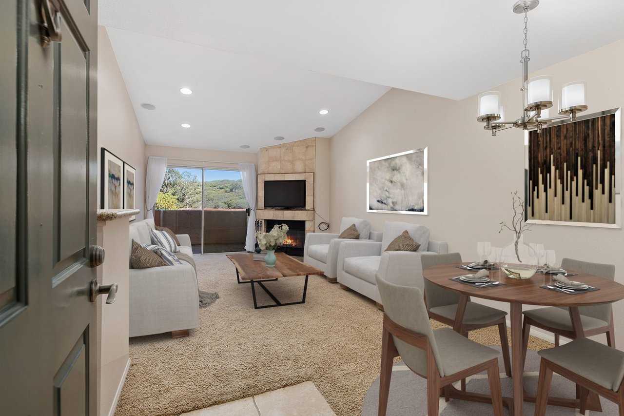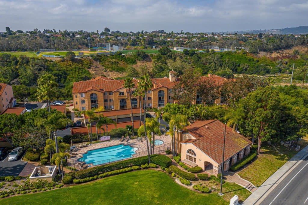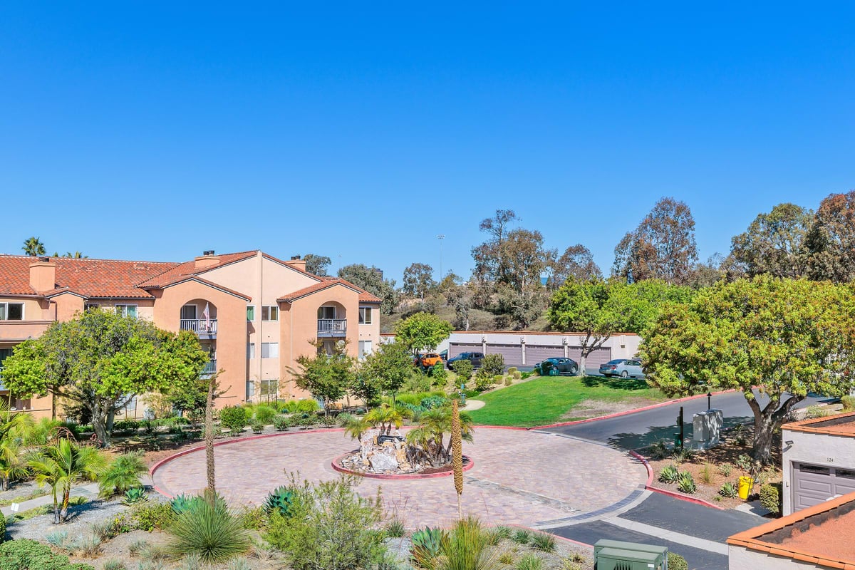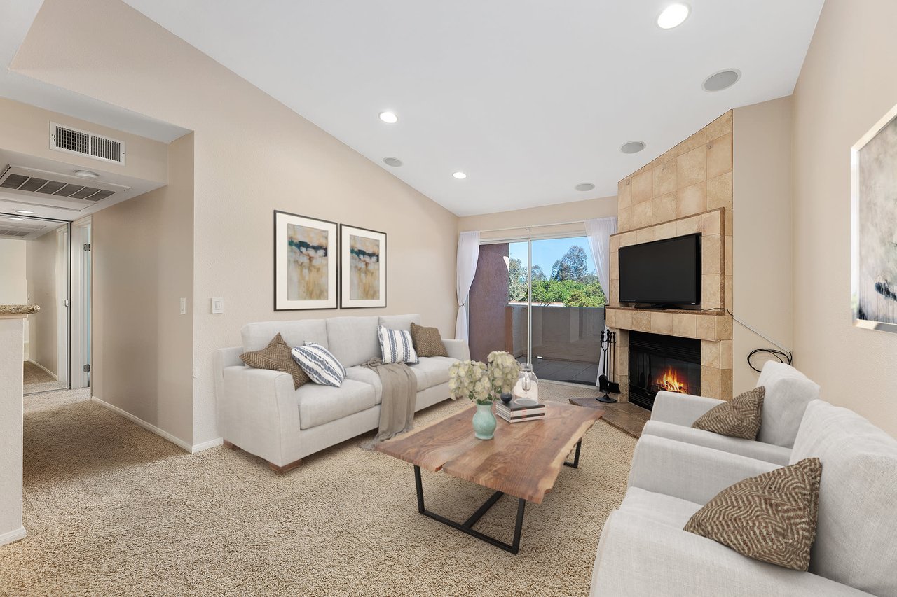 Price reduced! Beautiful move-in ready condo located within the gated community of Lucera in University City. This charming top floor unit has lots of natural light, a semi open kitchen with wood cabinetry, stainless appliances and granite counter tops. The kitchen overlooks the dining and living areas. Living room features built in speakers, a cozy fireplace and glass slider door leading to the balcony with additional storage. Lovely views from the top floor location overlook the common areas and green hillside. Continuing inside are the full size bathroom and the spacious primary bedroom with walk-in closet. In-unit washer and dryer, A/C and one car garage included. The Lucera community amenities include building elevators, gated entry, 2 pools, spas, sauna, fitness rooms, tennis courts, multiple sport courts, clubhouse and outdoor barbecue areas. HOA dues include water, sewer and trash. Walking distance to UTC shopping mall, restaurants, UCSD, bus stops, trolley transits, parks and library. Minutes away from 805 freeway, beaches and La Jolla Village.