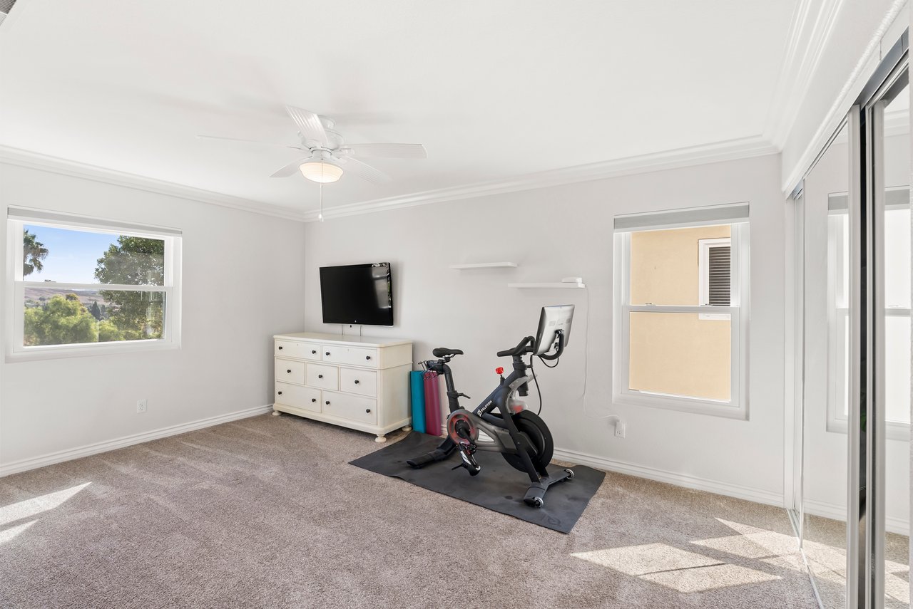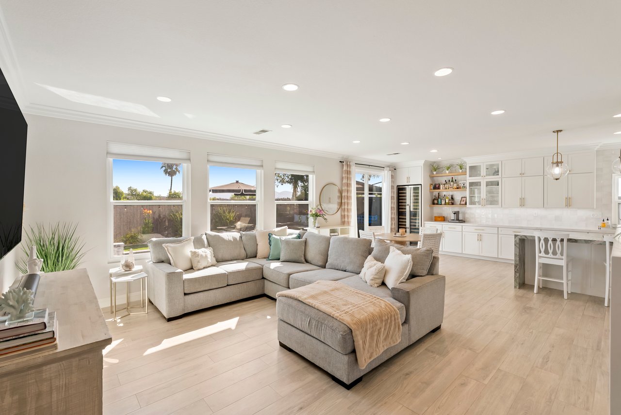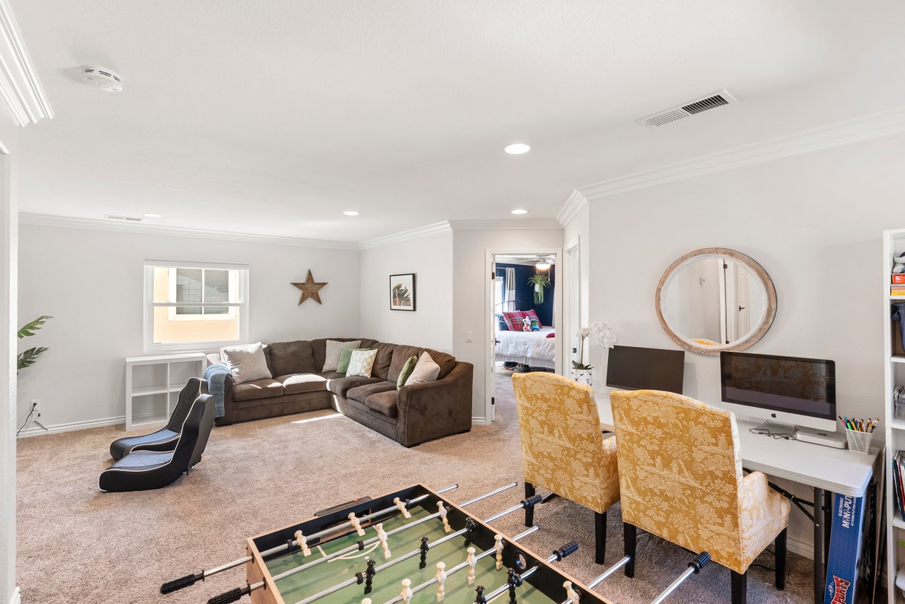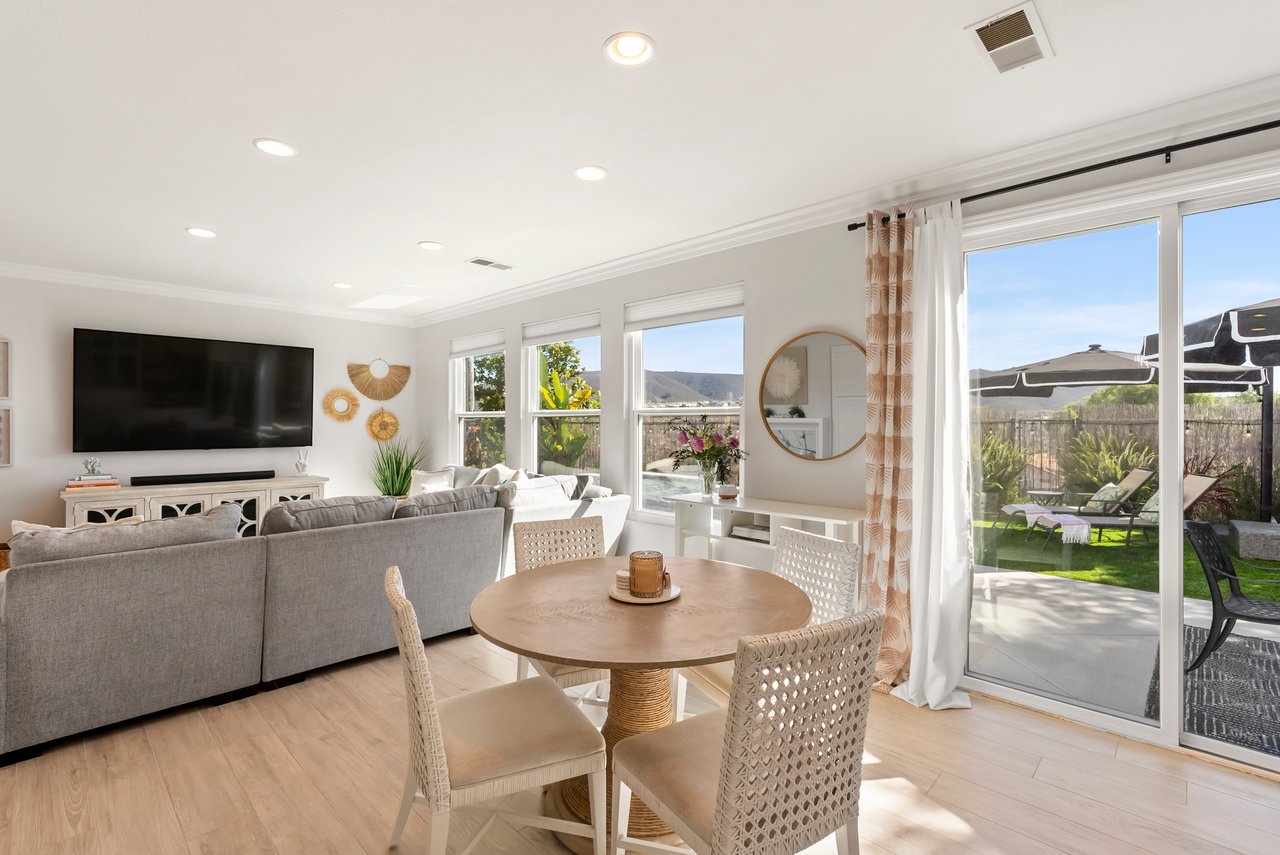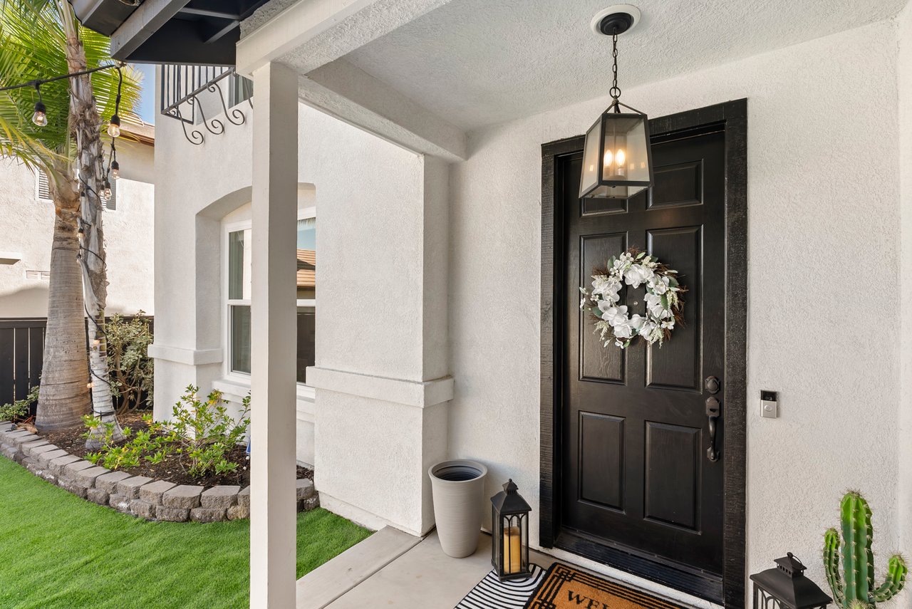 INCREDIBLE Santa Fe Hills home in San Marcos! Step inside this stunning residence and prepare to be captivated. The heart of the home is a designer kitchen featuring a custom Brazilian stone waterfall island, soft-close shaker cabinetry with champagne bronze hardware, stainless steel appliances and a dual zone 220+ bottle wine fridge. Every detail has been thoughtfully curated from a designers eye. Some of our favorite details include the illuminated pantry, elegant chandeliers, crown molding, recessed lighting, porcelain tile flooring and custom wallpaper accents throughout. Enjoy the best of California living in your private backyard retreat complete with no rear neighbors, a sparkling pool and spa with a fountain feature, low-maintenance turf, and sweeping mountain views. OWNED SOLAR and upgraded dual pane vinyl windows keep energy costs low, while A/C, ceiling fans and fireplace keep the home at the perfect temperature year round. This home offers a flexible floor plan with a downstairs bedroom and full bath, laundry room with sink + folding area and a spacious loft area perfect for play or work. The primary suite is a true sanctuary, boasting vaulted ceilings, two large walk-in closets with custom built in organizers, dual sinks, and a spa-like bathroom with shower and separate soaking tub. Ideally located with direct access to walking trails and moments from multiple neighborhood parks and the highly coveted and top-rated Paloma Elementary School. Las Posas Park with its pool, tennis courts, and sports fields is just down the street. Commuters will love the easy 78 freeway access or a quick ride on the Sprinter, while shoppers and foodies will appreciate the proximity to an abundance of stores and dining options. Palomar College is less than 5 minutes away. Mello Roos fee expires Sept 2027 and NO HOA! This home truly has it all. Homes like this are a rare find in Santa Fe Hills. Don’t wait on this one!