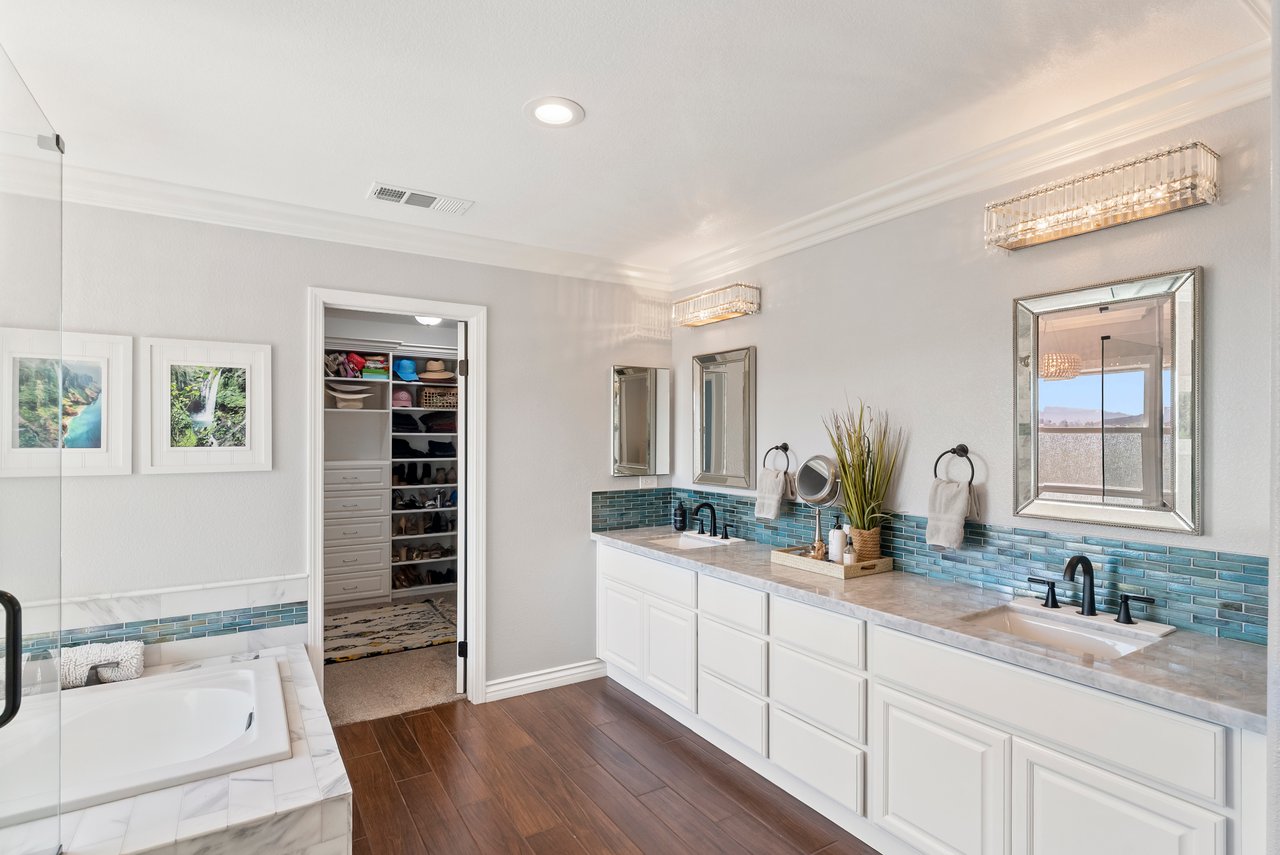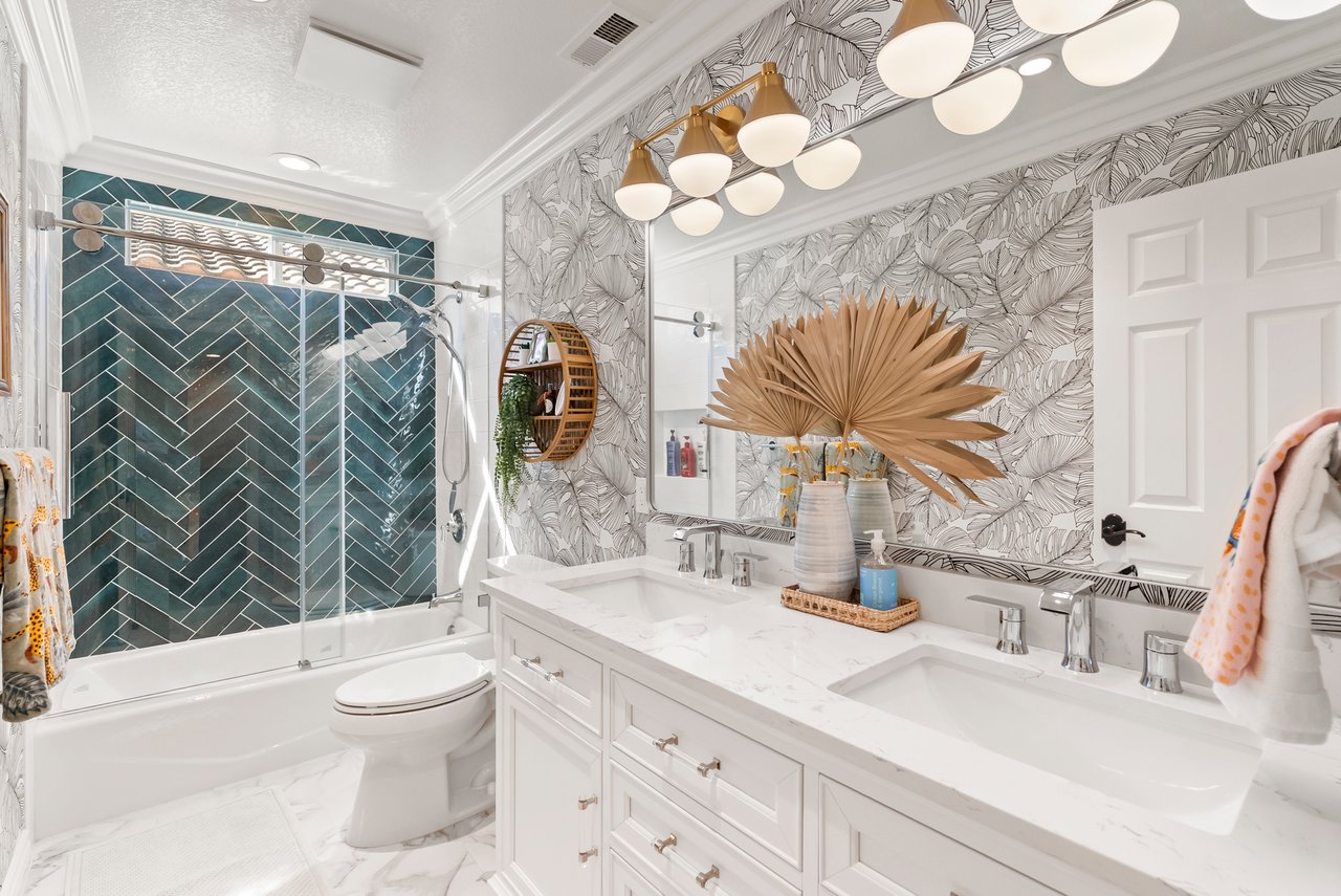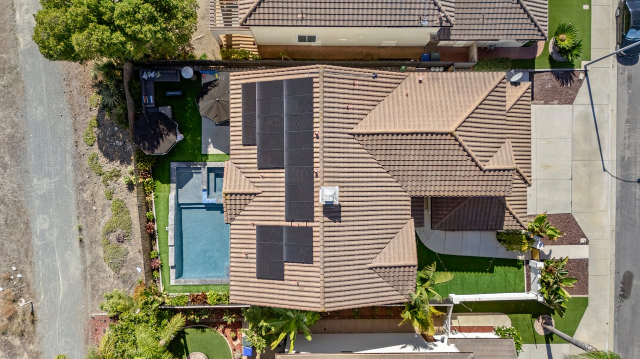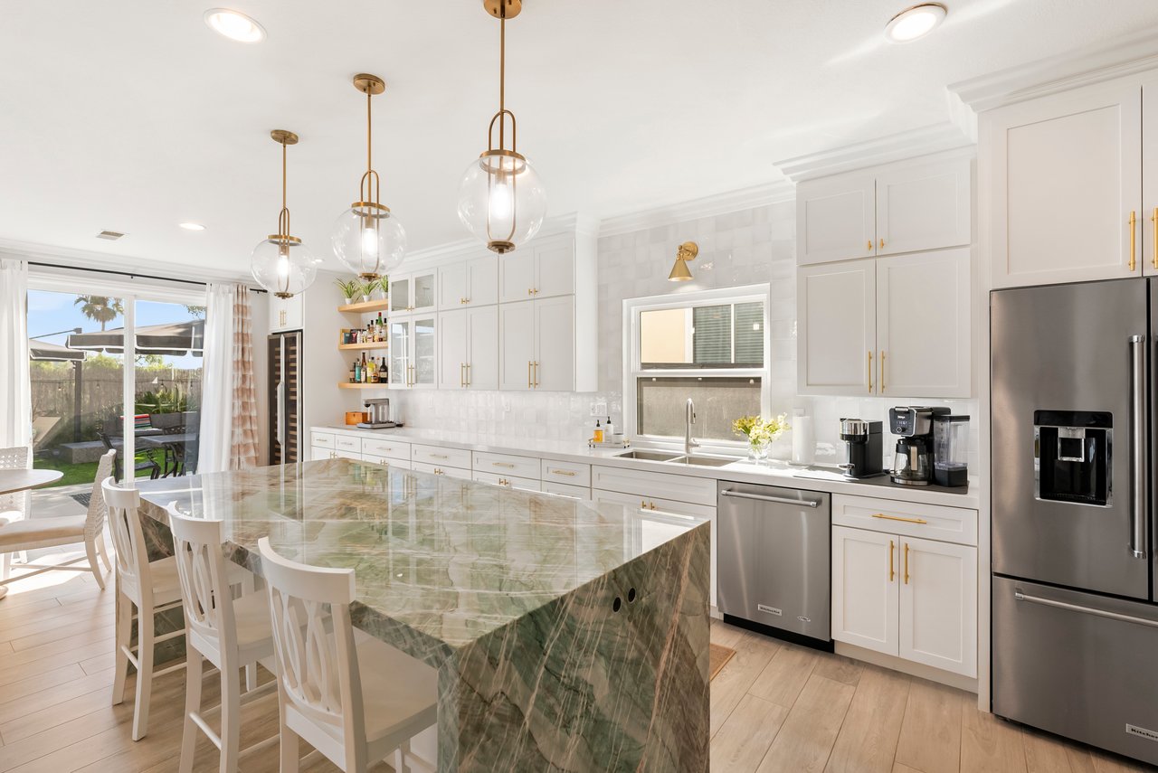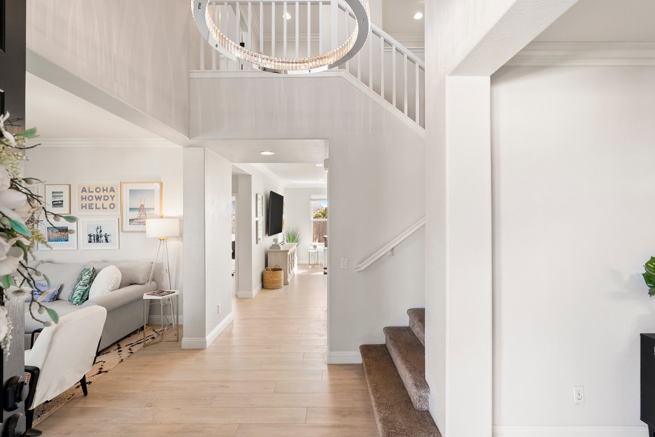 INCREDIBLE Santa Fe Hills home in San Marcos! Step inside this stunning residence and prepare to be captivated. The heart of the home is a designer kitchen featuring a custom Brazilian stone waterfall island, soft-close shaker cabinetry with champagne bronze hardware, stainless steel appliances and a dual zone 220+ bottle wine fridge. Every detail has been thoughtfully curated from a designers eye. Some of our favorite details include the illuminated pantry, elegant chandeliers, crown molding, recessed lighting, porcelain tile flooring and custom wallpaper accents throughout. Enjoy the best of California living in your private backyard retreat complete with no rear neighbors, a sparkling pool and spa with a fountain feature, low-maintenance turf, and sweeping mountain views. OWNED SOLAR and upgraded dual pane vinyl windows keep energy costs low, while A/C, ceiling fans and fireplace keep the home at the perfect temperature year round. This home offers a flexible floor plan with a downstairs bedroom and full bath, laundry room with sink + folding area and a spacious loft area perfect for play or work. The primary suite is a true sanctuary, boasting vaulted ceilings, two large walk-in closets with custom built in organizers, dual sinks, and a spa-like bathroom with shower and separate soaking tub. Ideally located with direct access to walking trails and moments from multiple neighborhood parks and the highly coveted and top-rated Paloma Elementary School. Las Posas Park with its pool, tennis courts, and sports fields is just down the street. Commuters will love the easy 78 freeway access or a quick ride on the Sprinter, while shoppers and foodies will appreciate the proximity to an abundance of stores and dining options. Palomar College is less than 5 minutes away. Mello Roos fee expires Sept 2027 and NO HOA! This home truly has it all. Homes like this are a rare find in Santa Fe Hills. Don’t wait on this one!