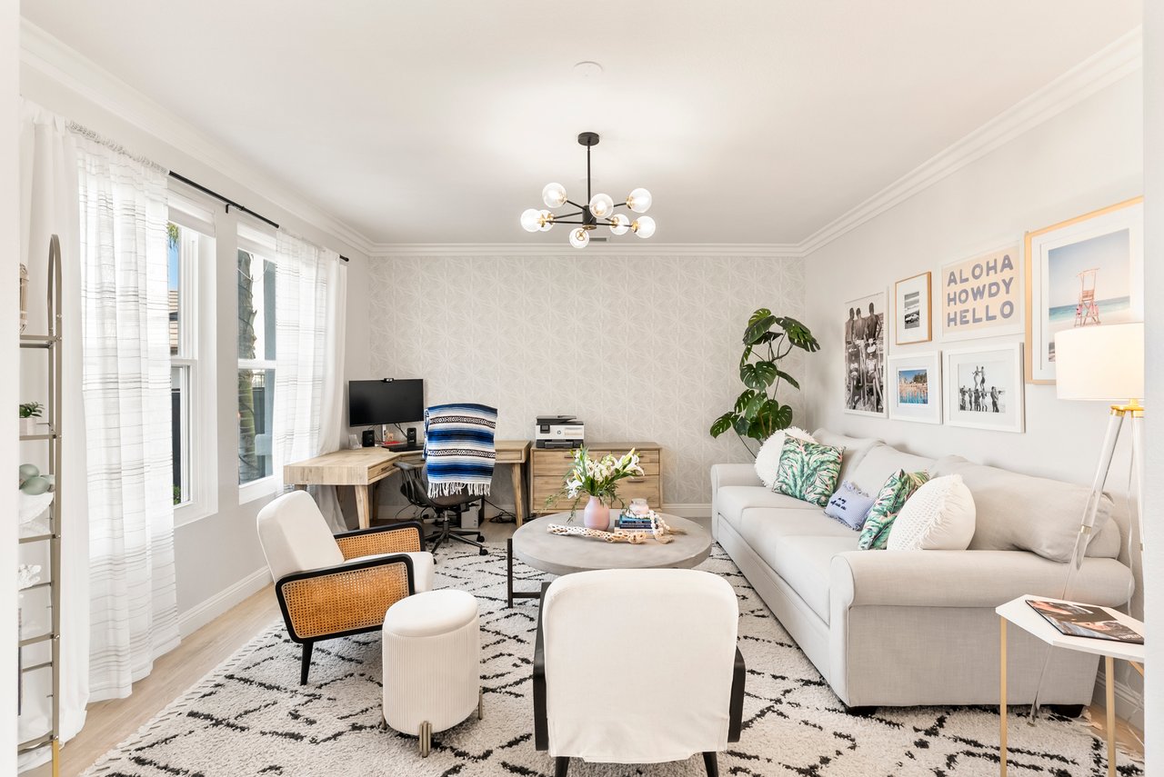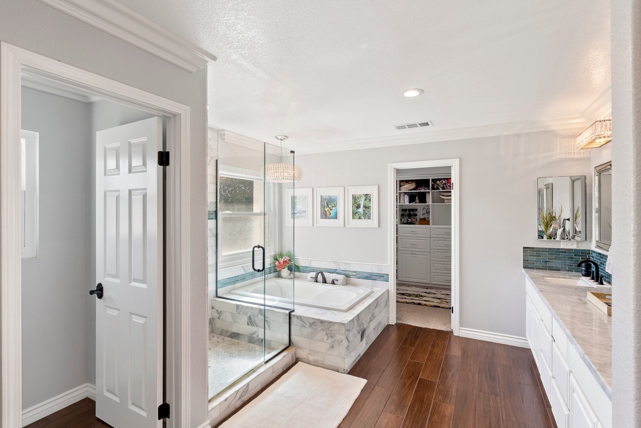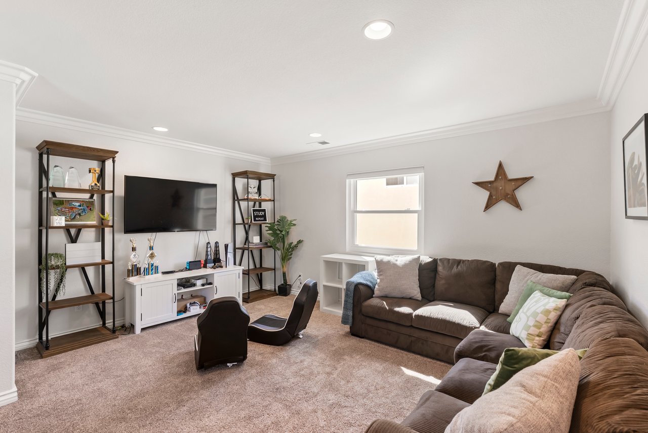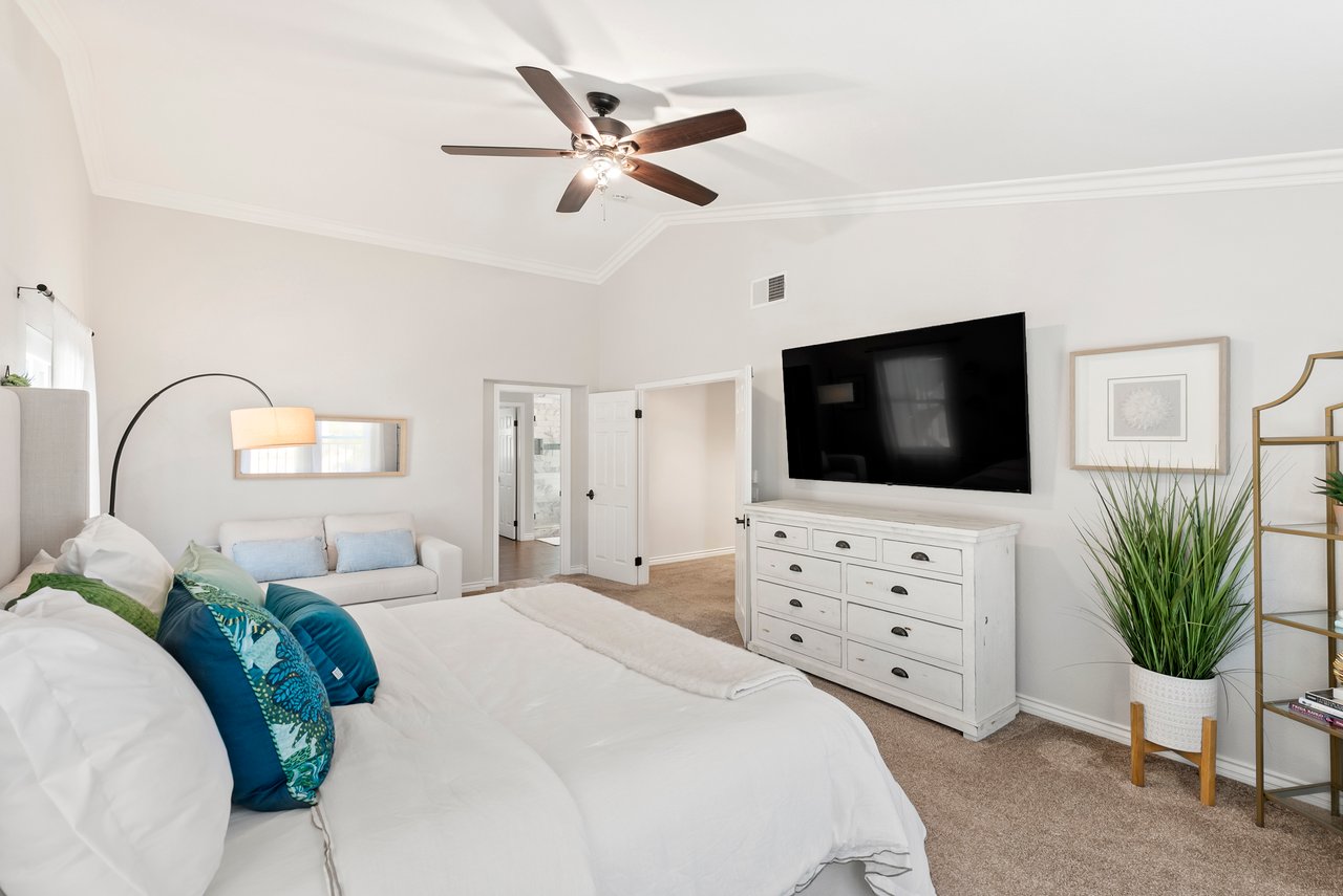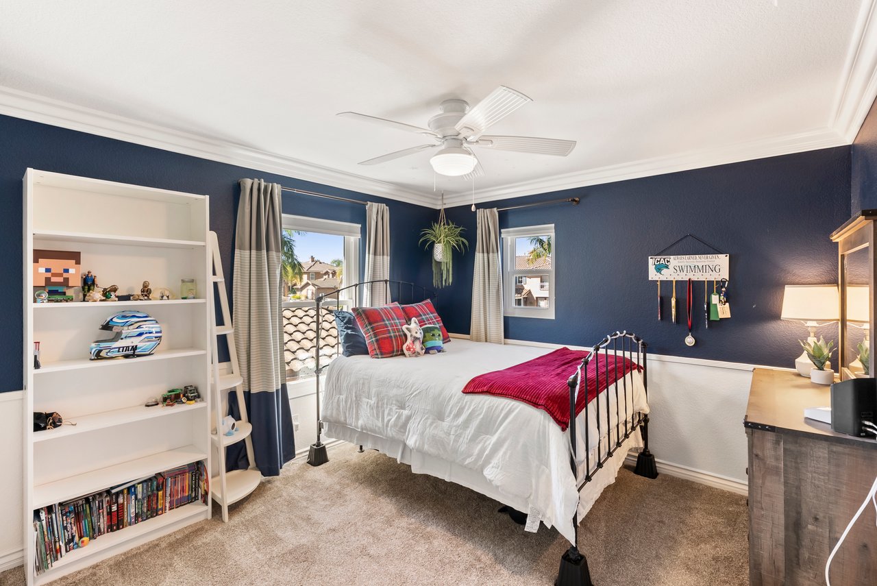 INCREDIBLE Santa Fe Hills home in San Marcos! Step inside this stunning residence and prepare to be captivated. The heart of the home is a designer kitchen featuring a custom Brazilian stone waterfall island, soft-close shaker cabinetry with champagne bronze hardware, stainless steel appliances and a dual zone 220+ bottle wine fridge. Every detail has been thoughtfully curated from a designers eye. Some of our favorite details include the illuminated pantry, elegant chandeliers, crown molding, recessed lighting, porcelain tile flooring and custom wallpaper accents throughout. Enjoy the best of California living in your private backyard retreat complete with no rear neighbors, a sparkling pool and spa with a fountain feature, low-maintenance turf, and sweeping mountain views. OWNED SOLAR and upgraded dual pane vinyl windows keep energy costs low, while A/C, ceiling fans and fireplace keep the home at the perfect temperature year round. This home offers a flexible floor plan with a downstairs bedroom and full bath, laundry room with sink + folding area and a spacious loft area perfect for play or work. The primary suite is a true sanctuary, boasting vaulted ceilings, two large walk-in closets with custom built in organizers, dual sinks, and a spa-like bathroom with shower and separate soaking tub. Ideally located with direct access to walking trails and moments from multiple neighborhood parks and the highly coveted and top-rated Paloma Elementary School. Las Posas Park with its pool, tennis courts, and sports fields is just down the street. Commuters will love the easy 78 freeway access or a quick ride on the Sprinter, while shoppers and foodies will appreciate the proximity to an abundance of stores and dining options. Palomar College is less than 5 minutes away. Mello Roos fee expires Sept 2027 and NO HOA! This home truly has it all. Homes like this are a rare find in Santa Fe Hills. Don’t wait on this one!