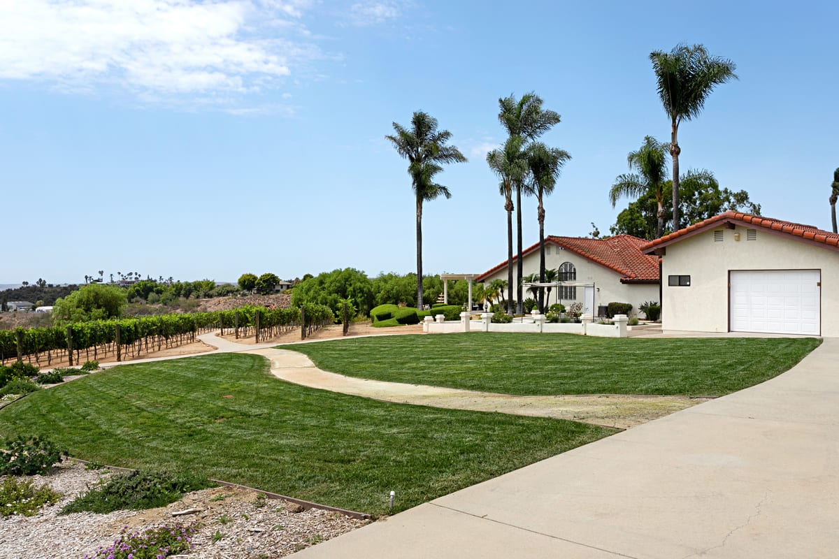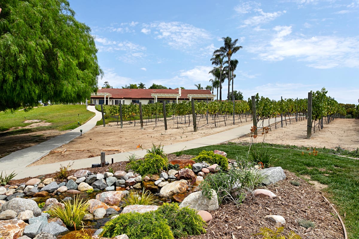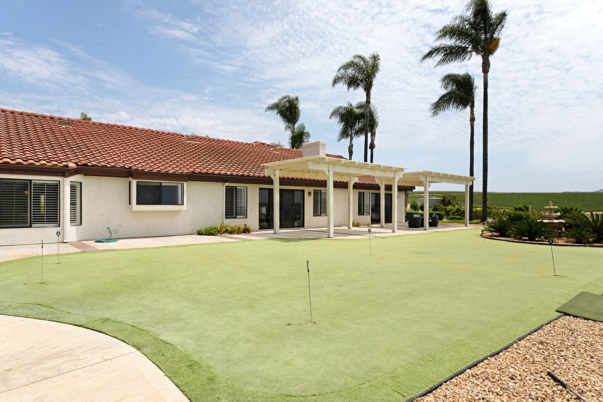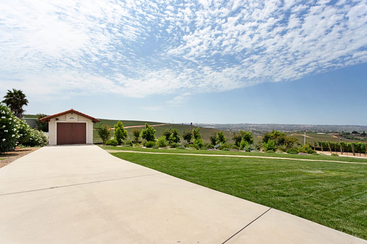 South Morro Hills dream property! This incredibly special home is a custom built single story, positioned hill top to capture breath taking panoramic south west views. The 2.54 Acre parcel is fully fenced, on well water and almost entirely landscaped with each section of the lot telling a story. The property includes a meandering walk way lined with weeping willows, a whimsical gazebo with waterfall and pond, large grassy yard for play, a putting green with newly constructed covered patio and the star of the show: An Italian Sangiovese organic vineyard, perfect for the red wine enthusiast. The main residence was designed with large rooms, high ceilings and perfectly positioned to capture the views. 4 Bedrooms, 2.5 Bathrooms and a 3 car attached garage. The master suite is on the opposite side of the home from the secondary bedrooms and there is dual zone heat and A/C. The home has been freshly painted inside and out and features travertine stone, brand new carpet and new luxury vinyl plank flooring. Appliances convey such as the front load laundry units, new kitchen refrigerator, house alarm and cameras. Adjacent to the home is a detached garage/workshop with a full bathroom and pull through garage doors. Two additional cars or a RV, trailer or boat can fit inside the garage. This could also make a wonderful optional ADU or guest home, or use it as a game room or workshop. The possibilities are endless! Garden shed behind the garage features double doors and is large enough to park a tractor or ride on mower. Neighboring property is agricultural land where tomatoes are grown - it's incredibly scenic and peaceful. Located in the highly desired Bonsall school district. Entertaining offers between $1,400,000 - $1,600,000. Your dream home awaits!