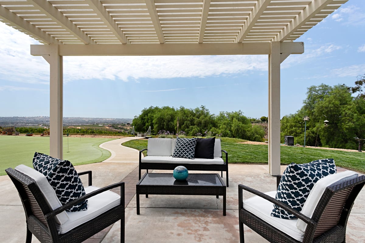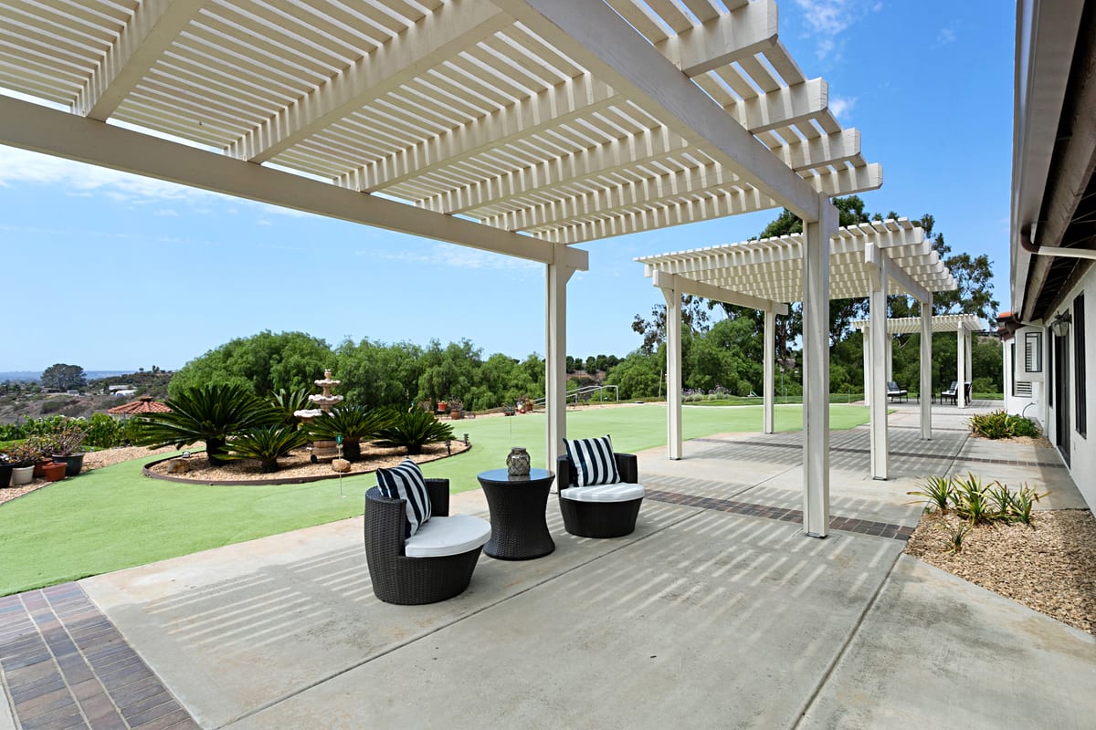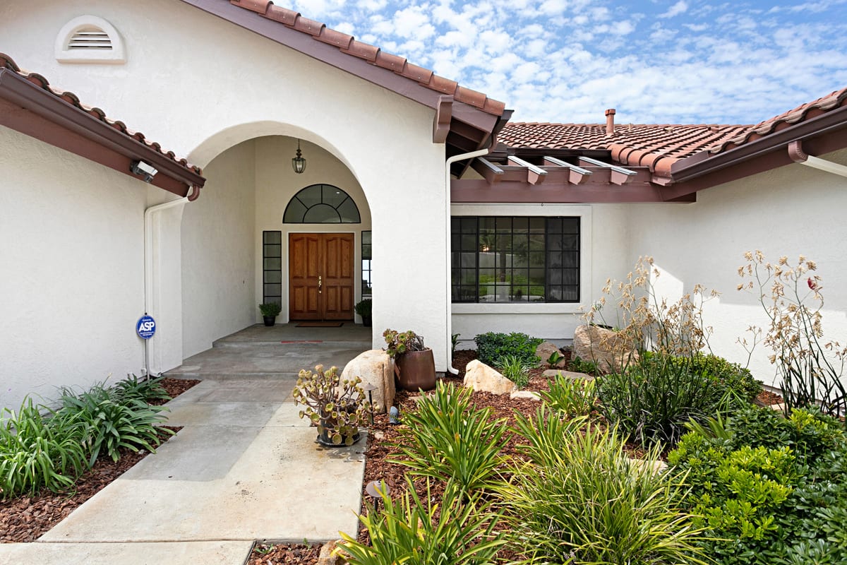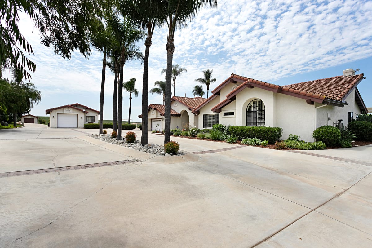 South Morro Hills dream property! This incredibly special home is a custom built single story, positioned hill top to capture breath taking panoramic south west views. The 2.54 Acre parcel is fully fenced, on well water and almost entirely landscaped with each section of the lot telling a story. The property includes a meandering walk way lined with weeping willows, a whimsical gazebo with waterfall and pond, large grassy yard for play, a putting green with newly constructed covered patio and the star of the show: An Italian Sangiovese organic vineyard, perfect for the red wine enthusiast. The main residence was designed with large rooms, high ceilings and perfectly positioned to capture the views. 4 Bedrooms, 2.5 Bathrooms and a 3 car attached garage. The master suite is on the opposite side of the home from the secondary bedrooms and there is dual zone heat and A/C. The home has been freshly painted inside and out and features travertine stone, brand new carpet and new luxury vinyl plank flooring. Appliances convey such as the front load laundry units, new kitchen refrigerator, house alarm and cameras. Adjacent to the home is a detached garage/workshop with a full bathroom and pull through garage doors. Two additional cars or a RV, trailer or boat can fit inside the garage. This could also make a wonderful optional ADU or guest home, or use it as a game room or workshop. The possibilities are endless! Garden shed behind the garage features double doors and is large enough to park a tractor or ride on mower. Neighboring property is agricultural land where tomatoes are grown - it's incredibly scenic and peaceful. Located in the highly desired Bonsall school district. Entertaining offers between $1,400,000 - $1,600,000. Your dream home awaits!